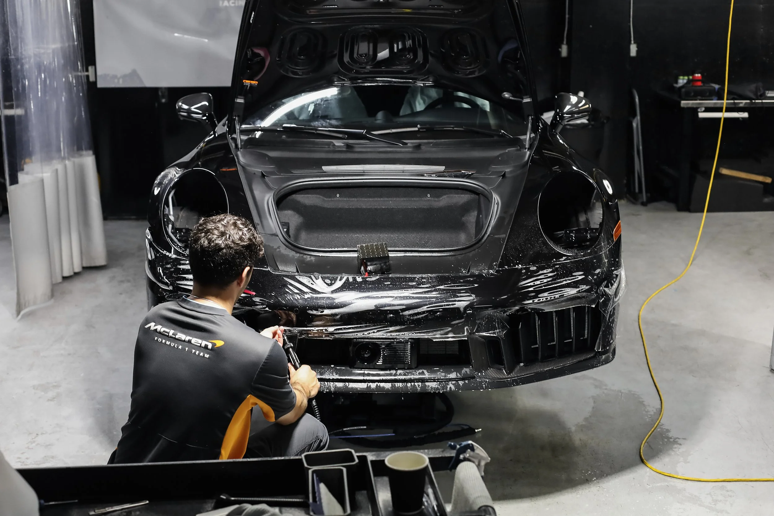 Over time, improper washing, oxidation, and environmental contaminants can leave your paint looking dull, hazy, and covered in swirl marks. Paint correction is the process of carefully polishing and refining your vehicle’s clear coat to permanently remove imperfections, not just mask them. At Pfaff Auto Spa, our highly skilled technicians use industry leading tools and techniques to restore depth, gloss, and mirror like clarity to your paintwork. from your daily driver to your concours show car. It’s the perfect foundation before applying Ceramic Pro or Paint Protection Film for a flawless, long lasting finish.